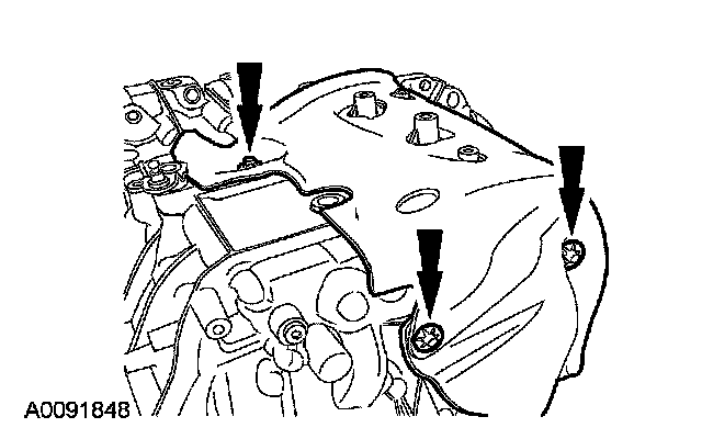 56. Position the transaxle mount in place and install the upper bolts.