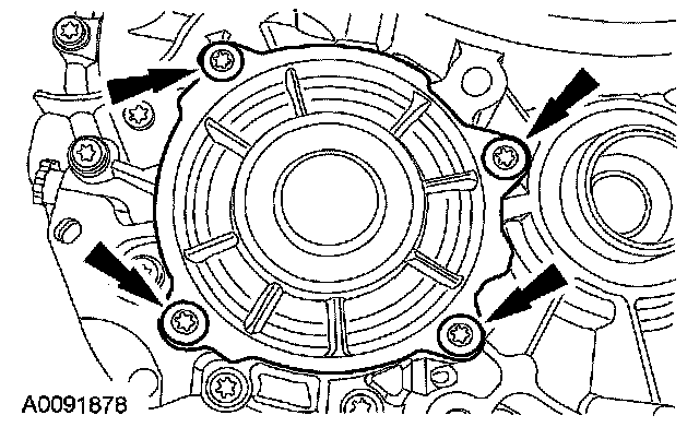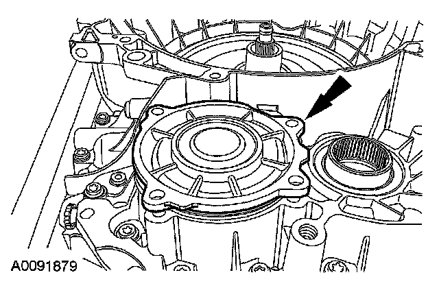 NOTE: The removal and installation procedures for the fluid pump are unique and different from the Torque Converter Housing, Reverse Clutch and Pump Assembly - Disassembly and Assembly procedures in Disassembly and Assembly of subassemblies. These procedures are to be used when only fluid pump installation is required. For complete transaxle overhaul and other procedures normally requiring the fluid pump to be removed and installed, refer to Torque Converter Housing, Reverse Clutch and Pump Assembly - Disassembly and Torque Converter Housing, Reverse Clutch and Pump Assembly - Assembly.