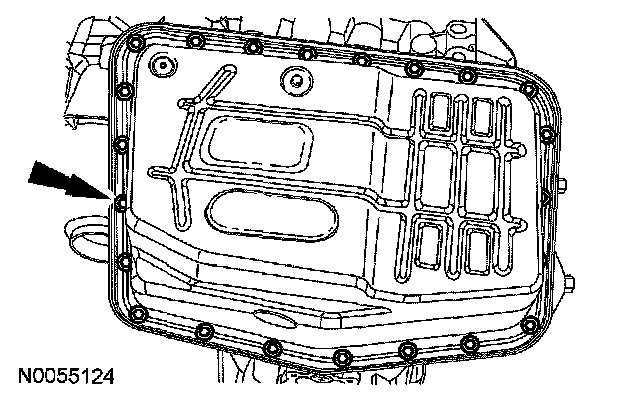 12. Remove and discard the transmission fluid pan gasket.