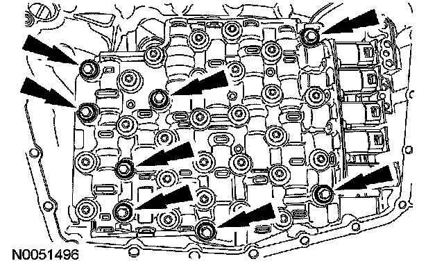 11. Remove the transmission fluid pan.