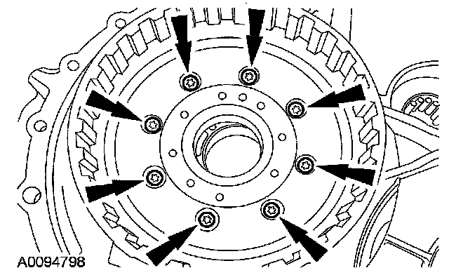 35. Remove the 8 fluid pump bolts and the pump assembly from the converter housing.