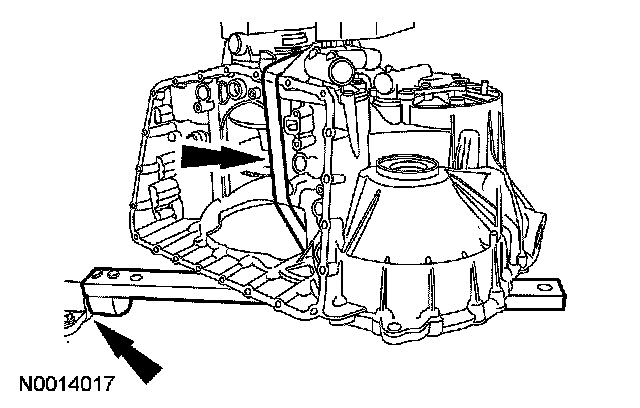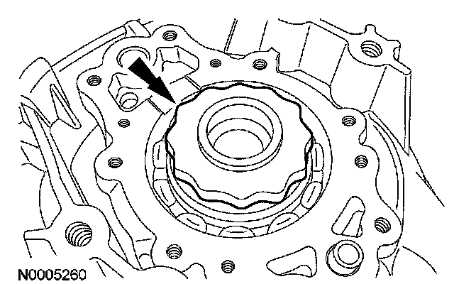 1. CAUTION: Prior to installing the transaxle case onto the variator assembly, make sure that the manual valve feed tube is correctly installed in the case. Damage to the manual valve feed and variator could occur if not correctly installed.