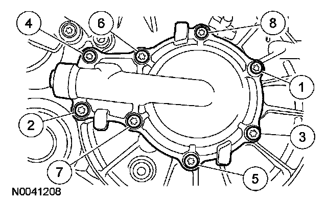 15. Using new bolts, install the primary cover and tighten in the sequence shown, in 2 stages: