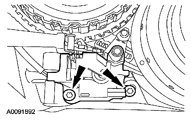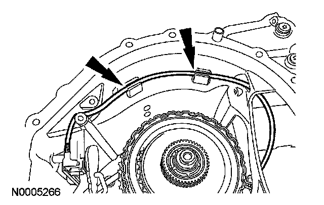 30. Make sure when routing the range selector valve assembly wiring harness that it is between the bolt holes and is pressed into the case retainers.