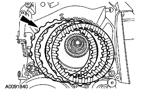 49. Install the forward clutch plates, steel and friction, alternating between steel and friction, starting with a steel plate.