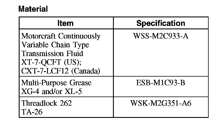 CAUTION: MERCON (R), MERCON (R) V and MERCON (R) SP, Motorcraft Premium Automatic Transmission Fluid and Motorcraft Continuously Variable Chain Type Transmission Fluid are not interchangeable transmission fluids.