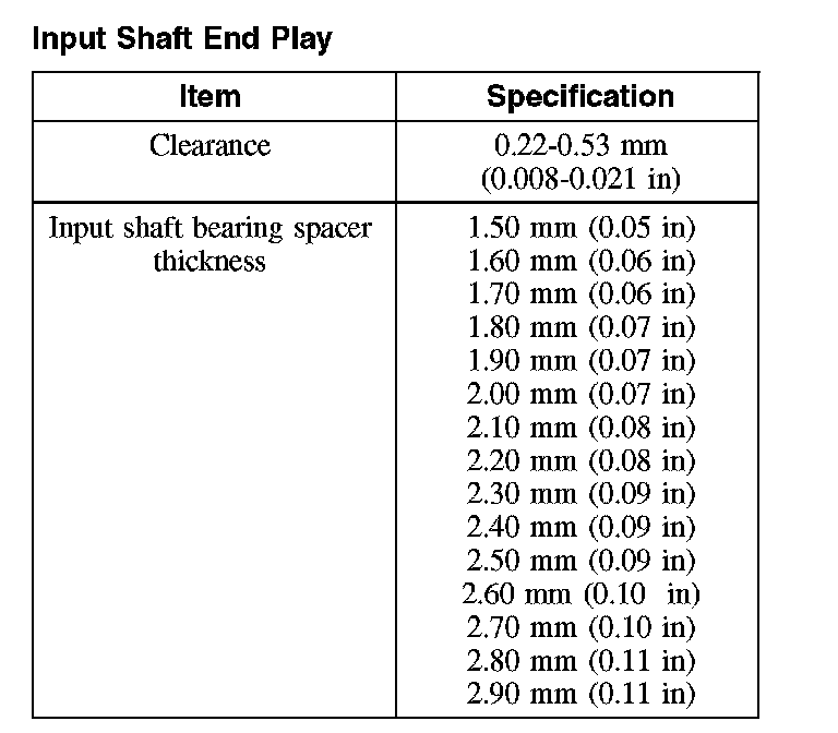 Input Shaft End Play: