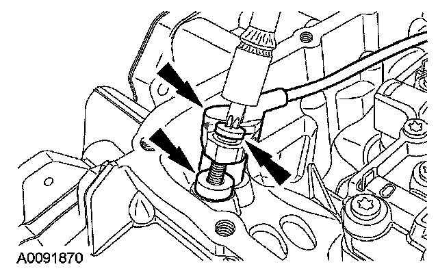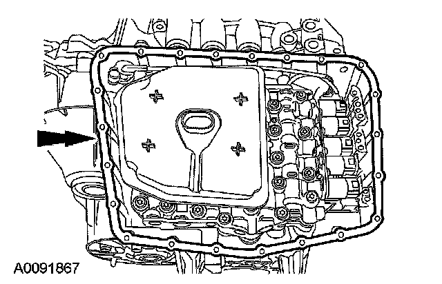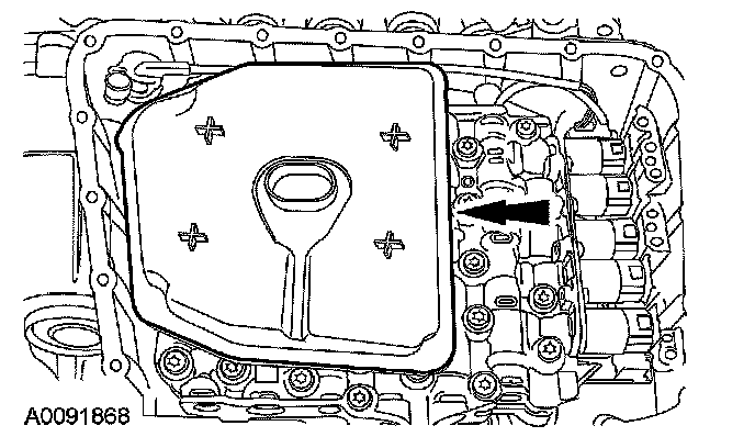 CAUTION: Make sure that the transmission fluid filter is fully seated into the bore. If the transmission fluid filter is not correctly installed, internal transaxle damage will occur.