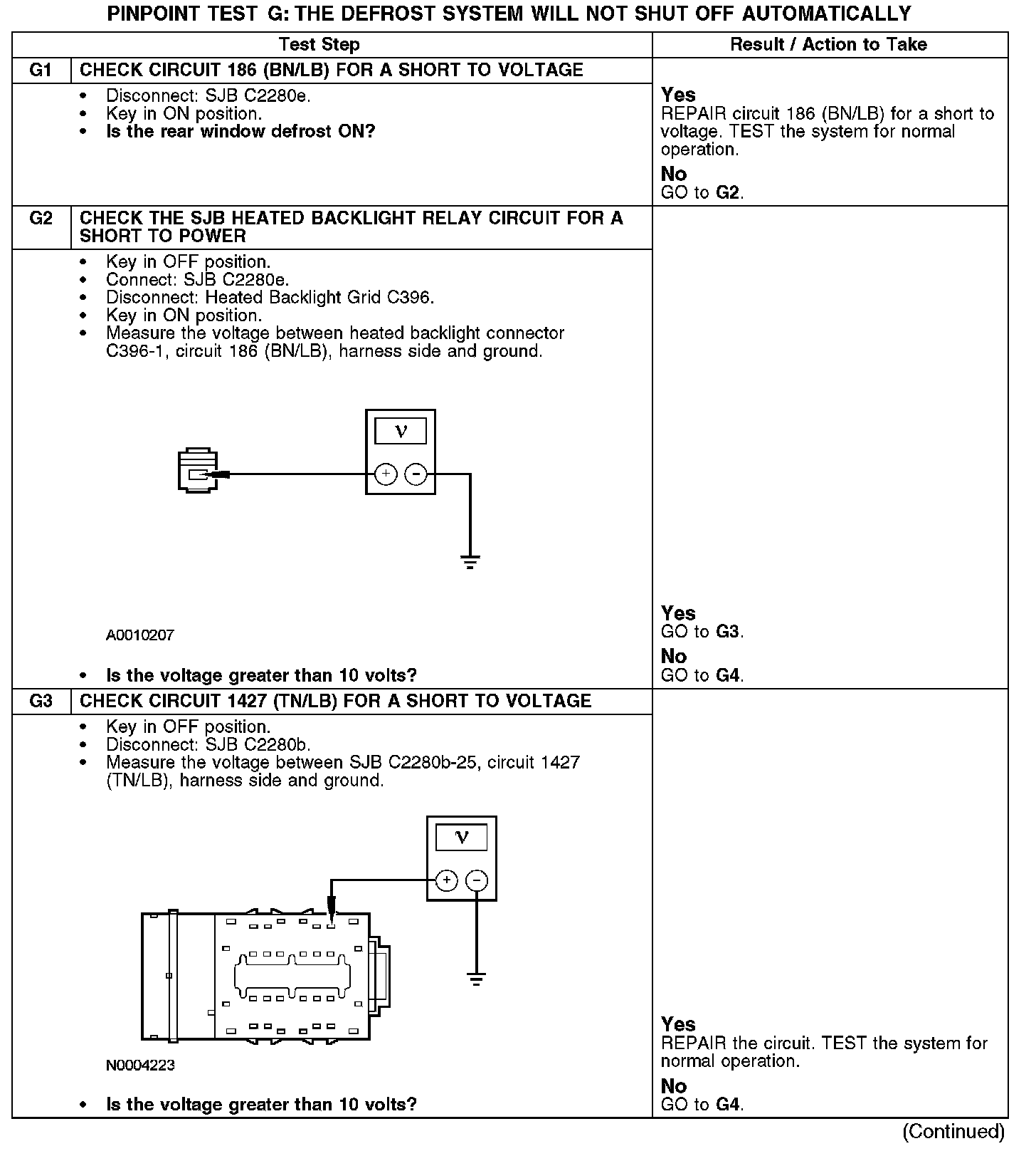 PINPOINT TEST G: THE DEFROST SYSTEM WILL NOT SHUT OFF AUTOMATICALLYG1-G3: