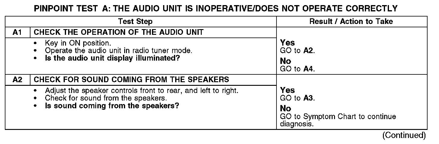 PINPOINT TEST A: THE AUDIO UNIT IS INOPERATIVE/DOES NOT OPERATE CORRECTLYA1-A2: