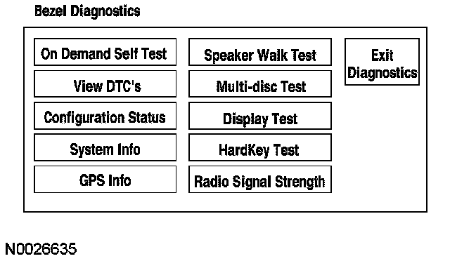 NAVIGATION AUDIO UNIT SELF-DIAGNOSTICSThe navigation system provides internal self-diagnostics to assist with diagnosing vehicle concerns.