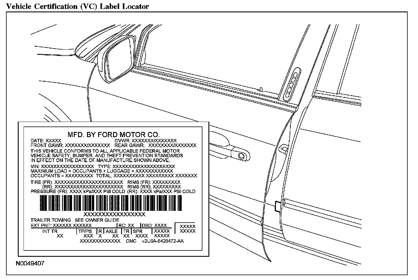 VEHICLE CERTIFICATION (VC) LABELVehicle Certification (VC) Label Locator: