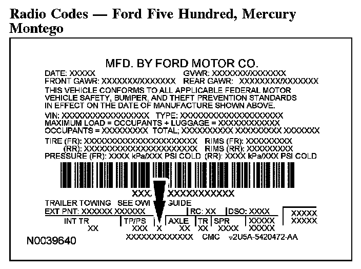 Radio Codes - Ford Five Hundred, Mercury Montego: