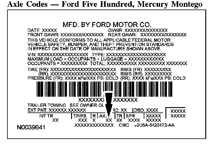 Axle Codes - Ford Five Hundred, Mercury Montego: