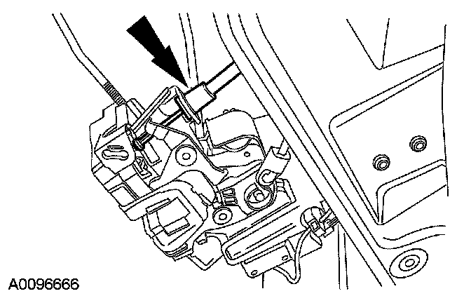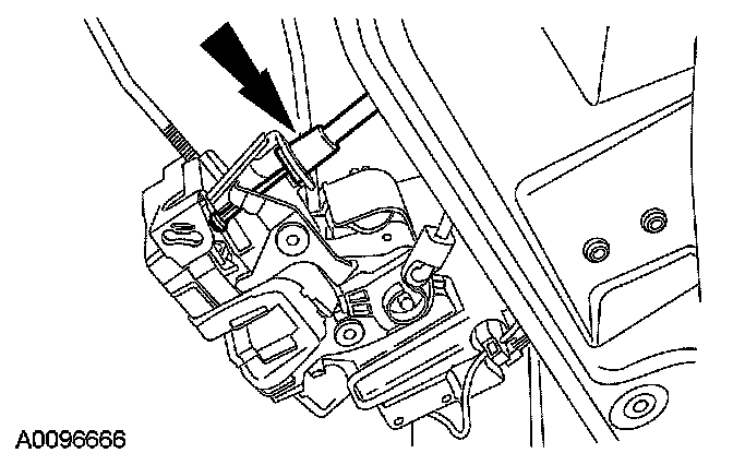 - The exterior door handle actuating rod must be hanging freely then clipped into the door latch. Loading the exterior door handle actuating rod up or down when connecting may result in a misadjustment of the latch causing the latch not to operate correctly.