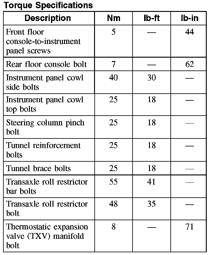 Torque Specifications: