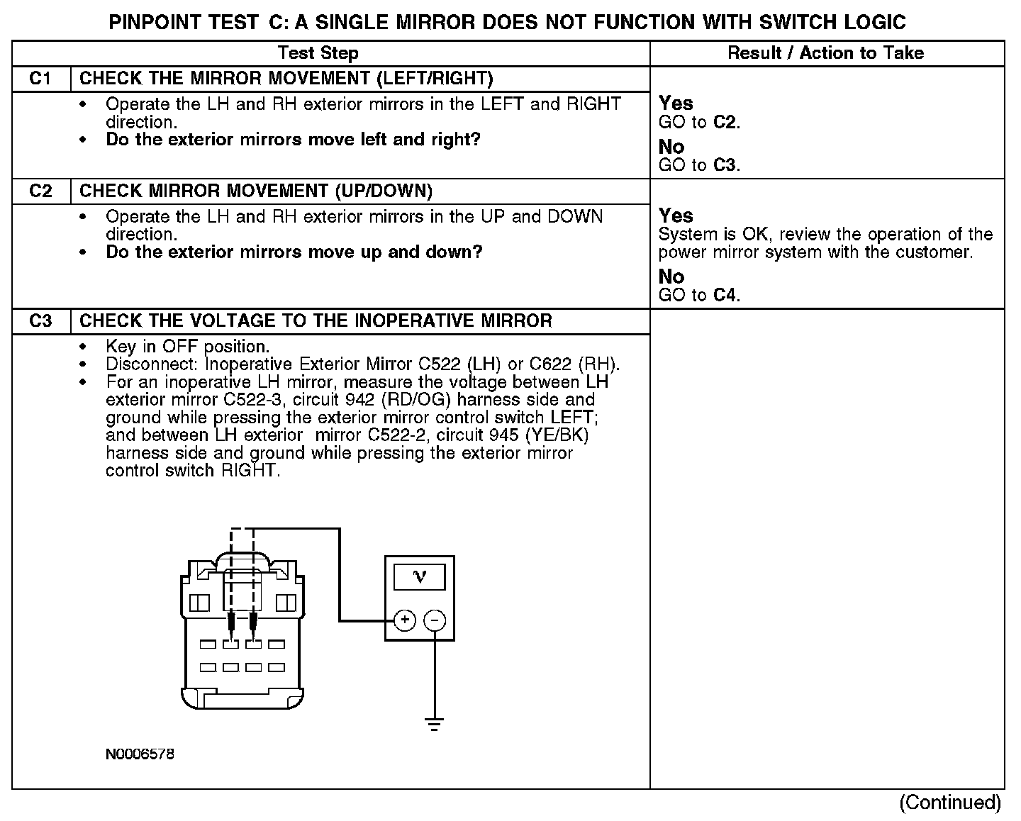 PINPOINT TEST C: A SINGLE MIRROR DOES NOT FUNCTION WITH SWITCH LOGICC1-C3: