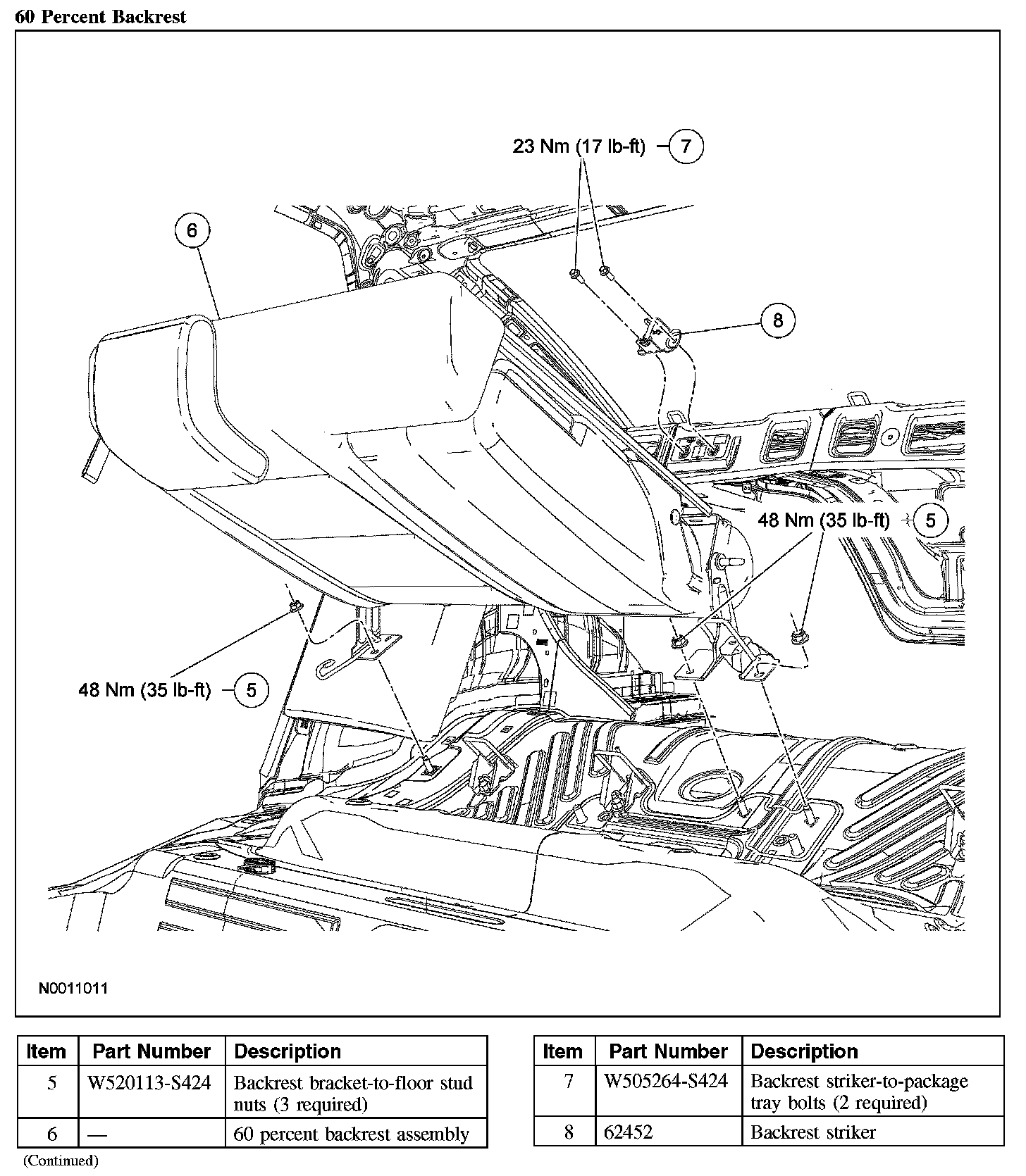 SEAT BACKREST-REAR, FIVE HUNDRED, MONTEGO40 Percent Backrest (part 1):
