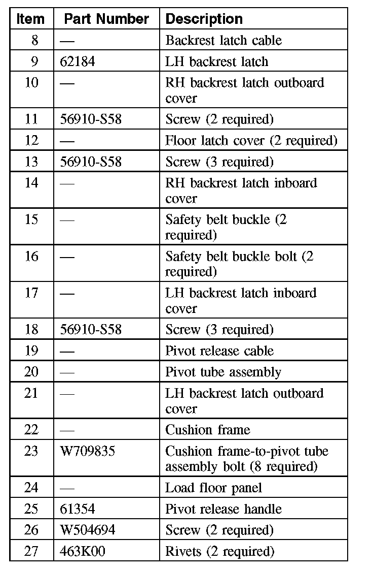 15. Separate the cable, remove 2 bolts and the LH backrest latch.