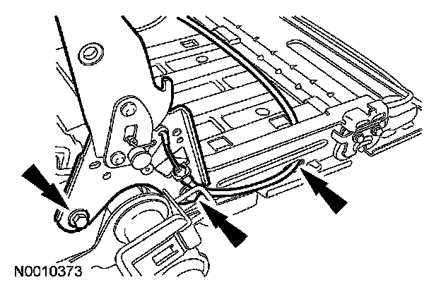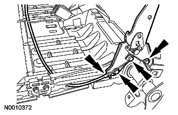 16. Remove 2 bolts, route the cable out of the cushion frame and remove the RH backrest latch.