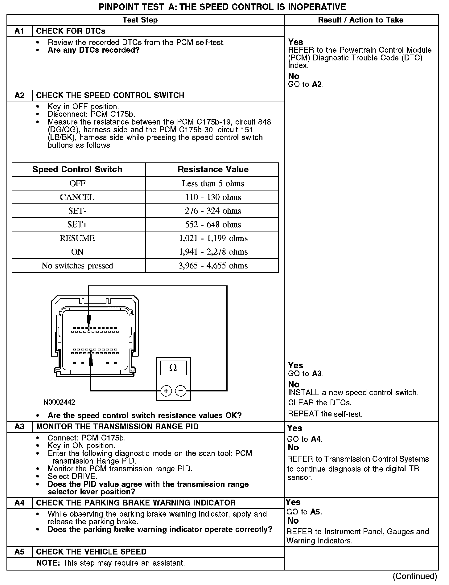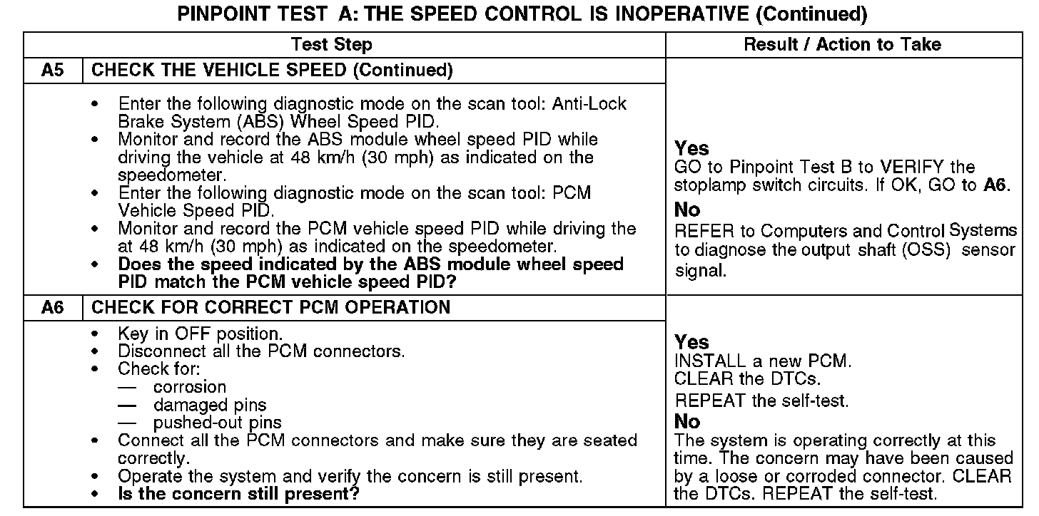 PINPOINT TEST A: THE SPEED CONTROL IS INOPERATIVEA1-A5: