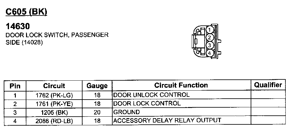 Door Lock Switch, Passenger Side