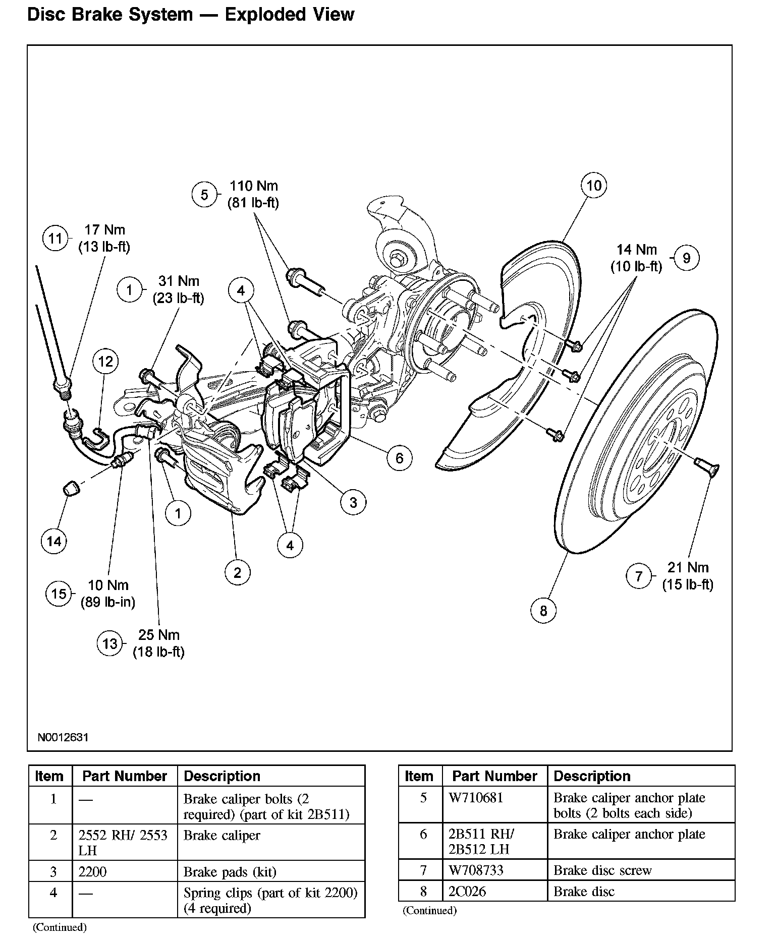 Disc Brake System - Exploded View: