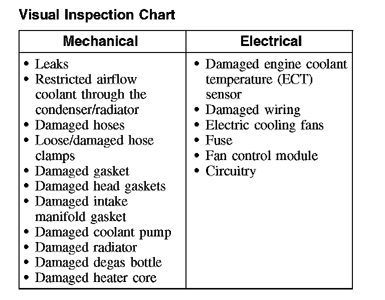 Visual Inspection Chart: