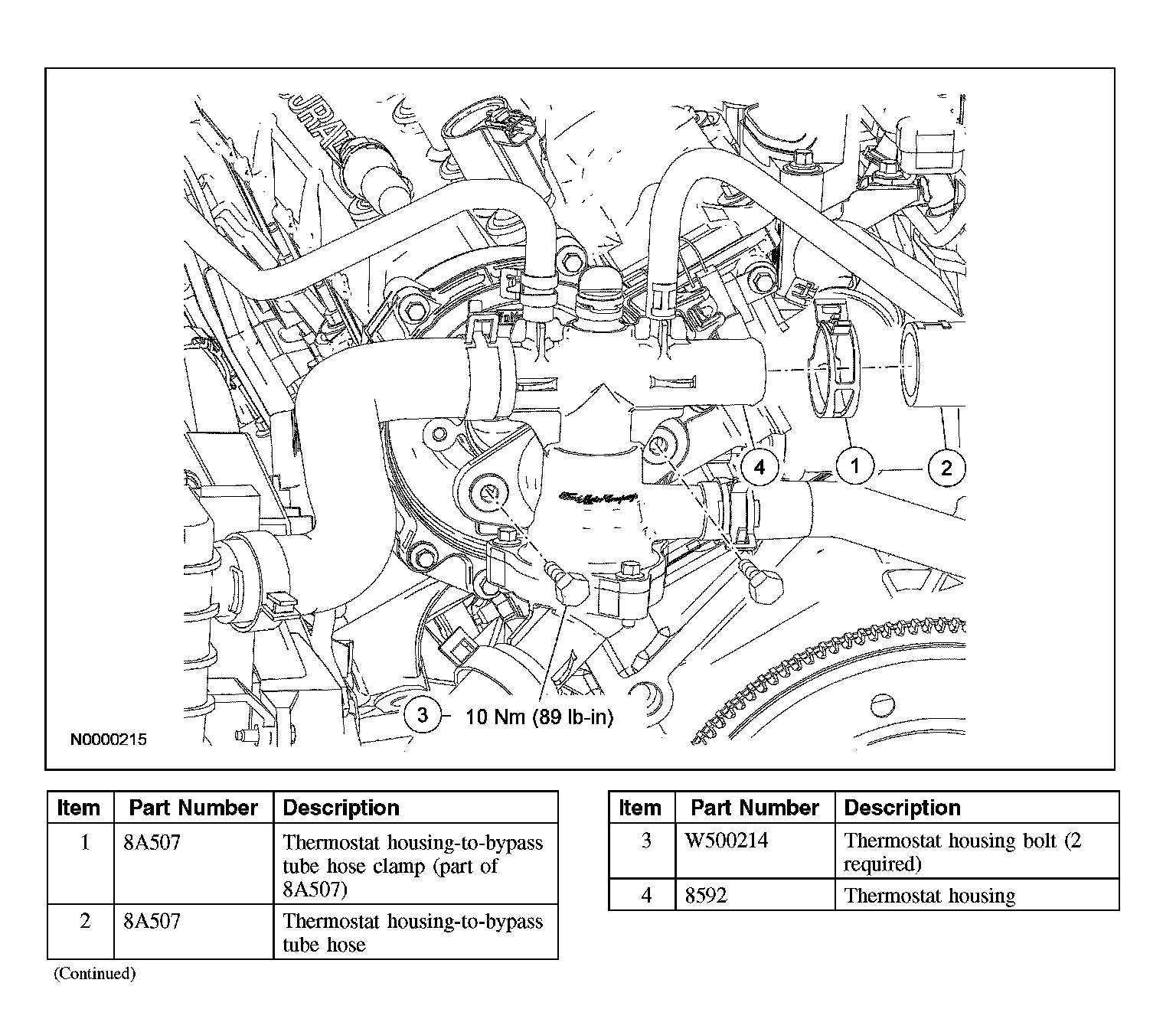 3. Disconnect the thermostat housing-to-bypass tube hose and position aside.