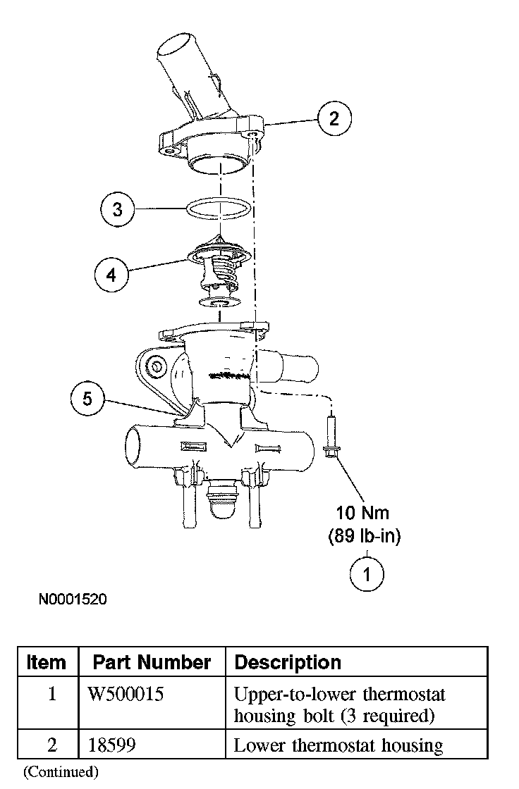 3. Install the lower thermostat housing and the 3 bolts.