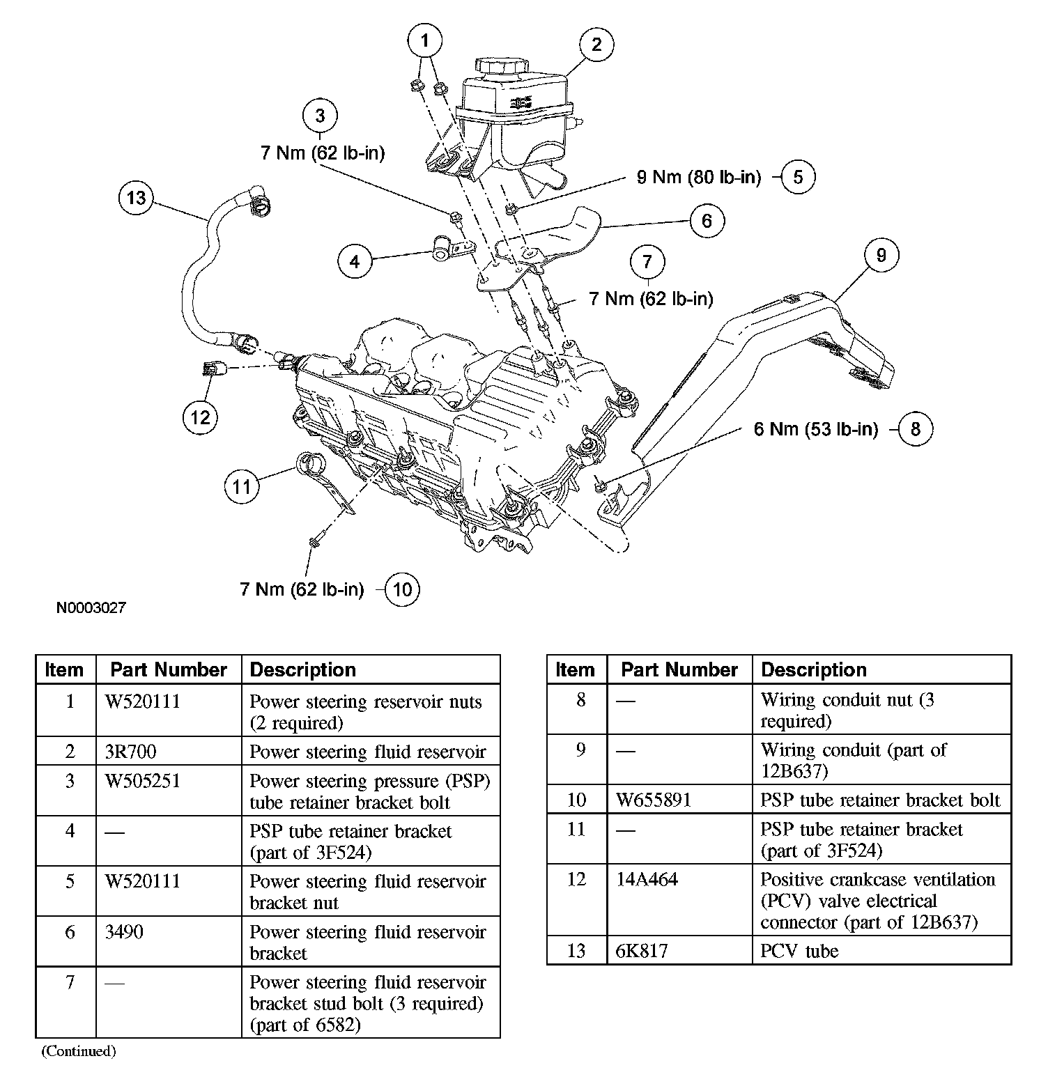 8. Remove the 3 power steering fluid reservoir bracket stud bolts from the valve cover.