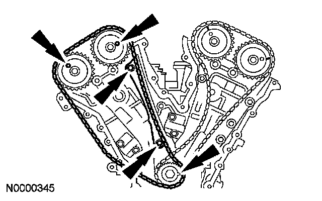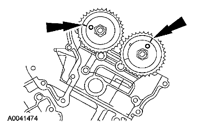 39. If timing marks in the timing chains are not evident, use a permanent-type marker to mark the crankshaft and camshaft timing marks on the LH and RH timing chains.