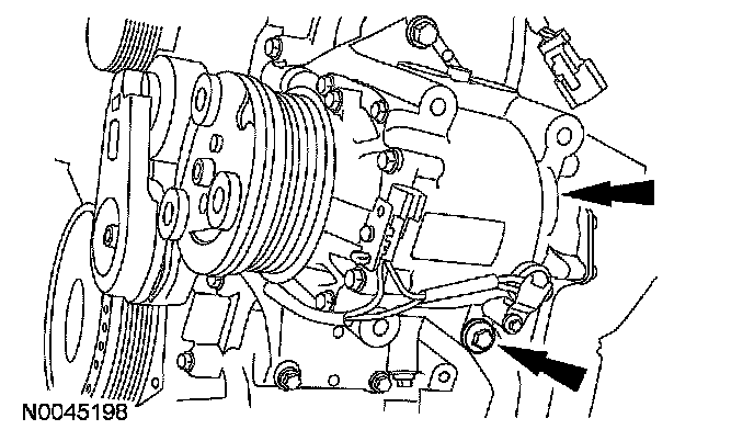 10. Remove the 2 bolts, 2 nuts and the A/C compressor.