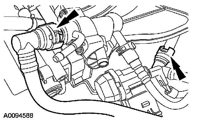 34. Disconnect the engine coolant temperature (ECT) sensor and the radio interference capacitor electrical connectors.