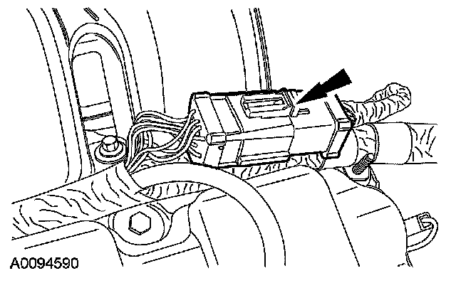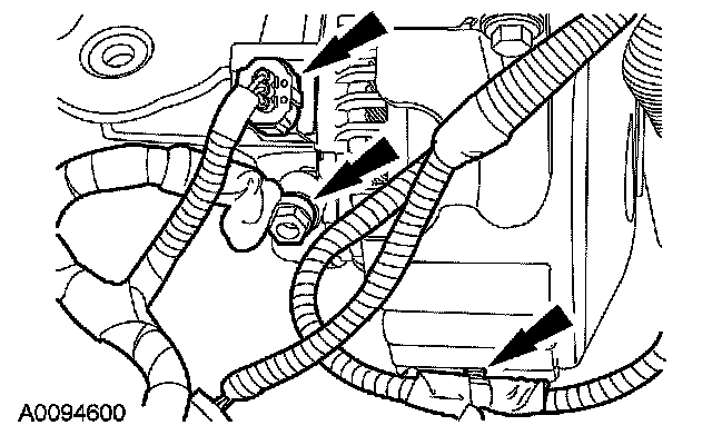 12. Disconnect the LH heated oxygen sensor (HO2S) electrical connector and detach the wiring retainer.