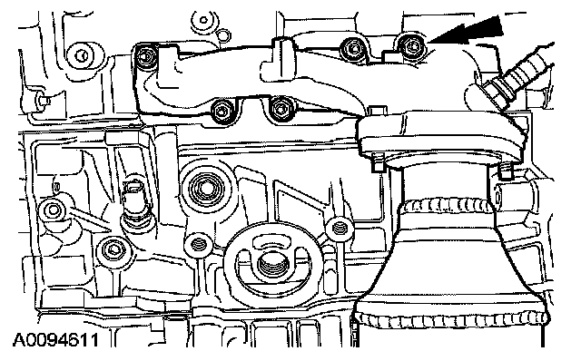 45. Remove and discard the 6 LH exhaust manifold nuts.