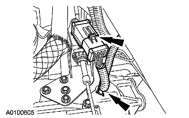 ^ Attach the electrical connector to the shift cable bracket.