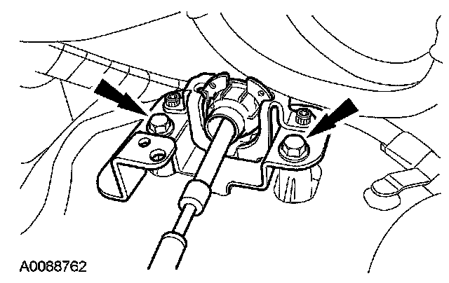 72. Position the shift cable bracket and install the 2 bolts.