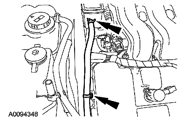 75. Attach the transmission vent tube to the coolant hose.