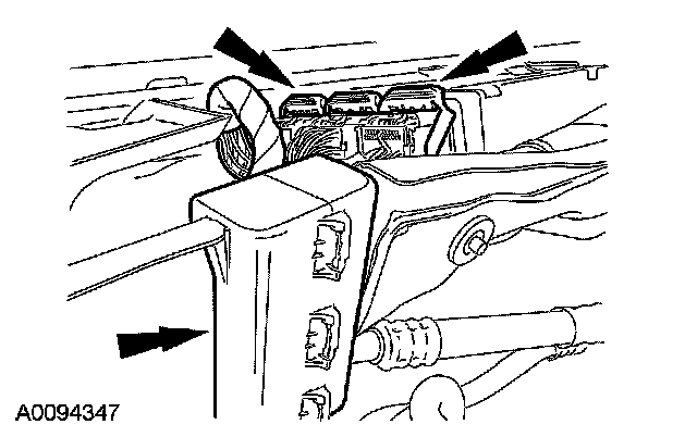 ^ Connect the electrical connector to the shift cable bracket.