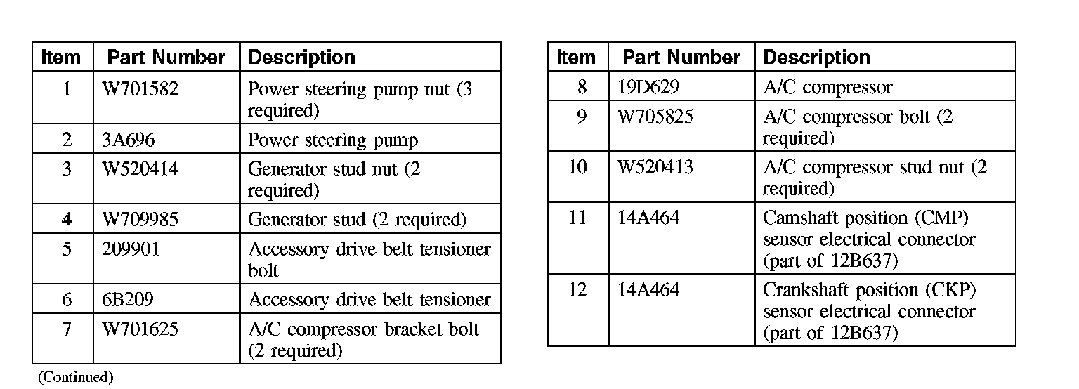 7. Install the 2 A/C compressor bracket-to-engine front cover bolts.