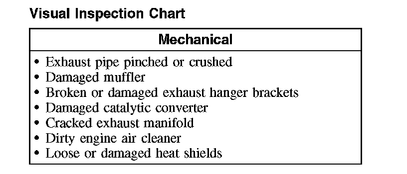 2. Visually inspect the components of the exhaust system and related controls that may affect exhaust gas quality or loss of power.