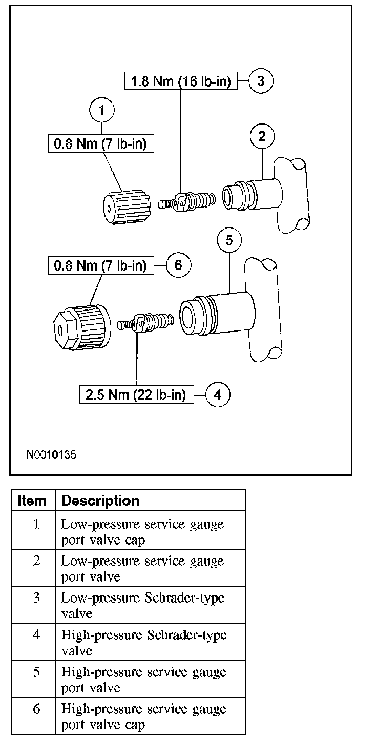 - The service gauge port valve caps are used as primary seals in the refrigerant system to prevent leakage through the Schrader-type valves from reaching the atmosphere. Always install and tighten the A/C service gauge port valve caps to the correct torque after they are removed.
