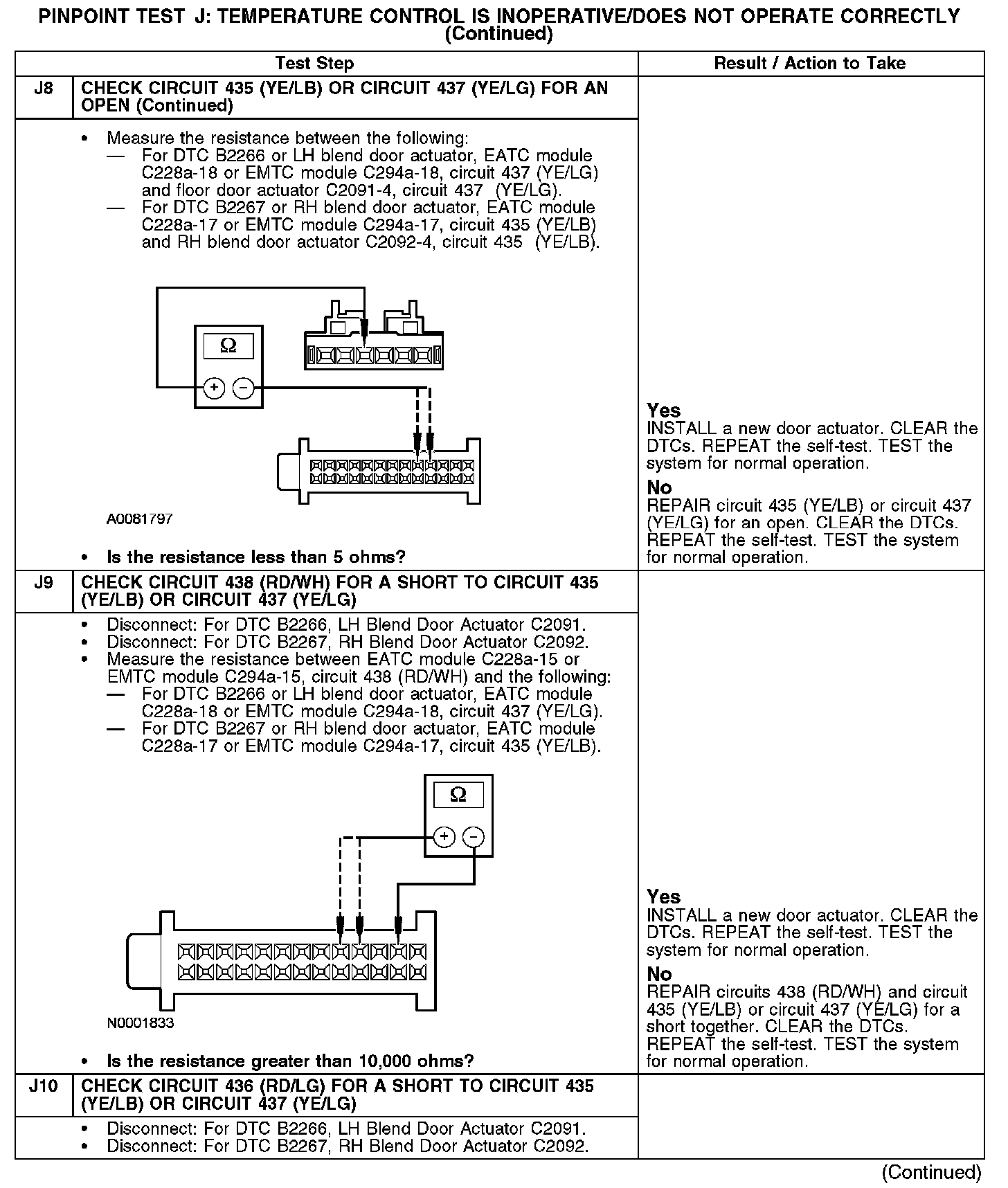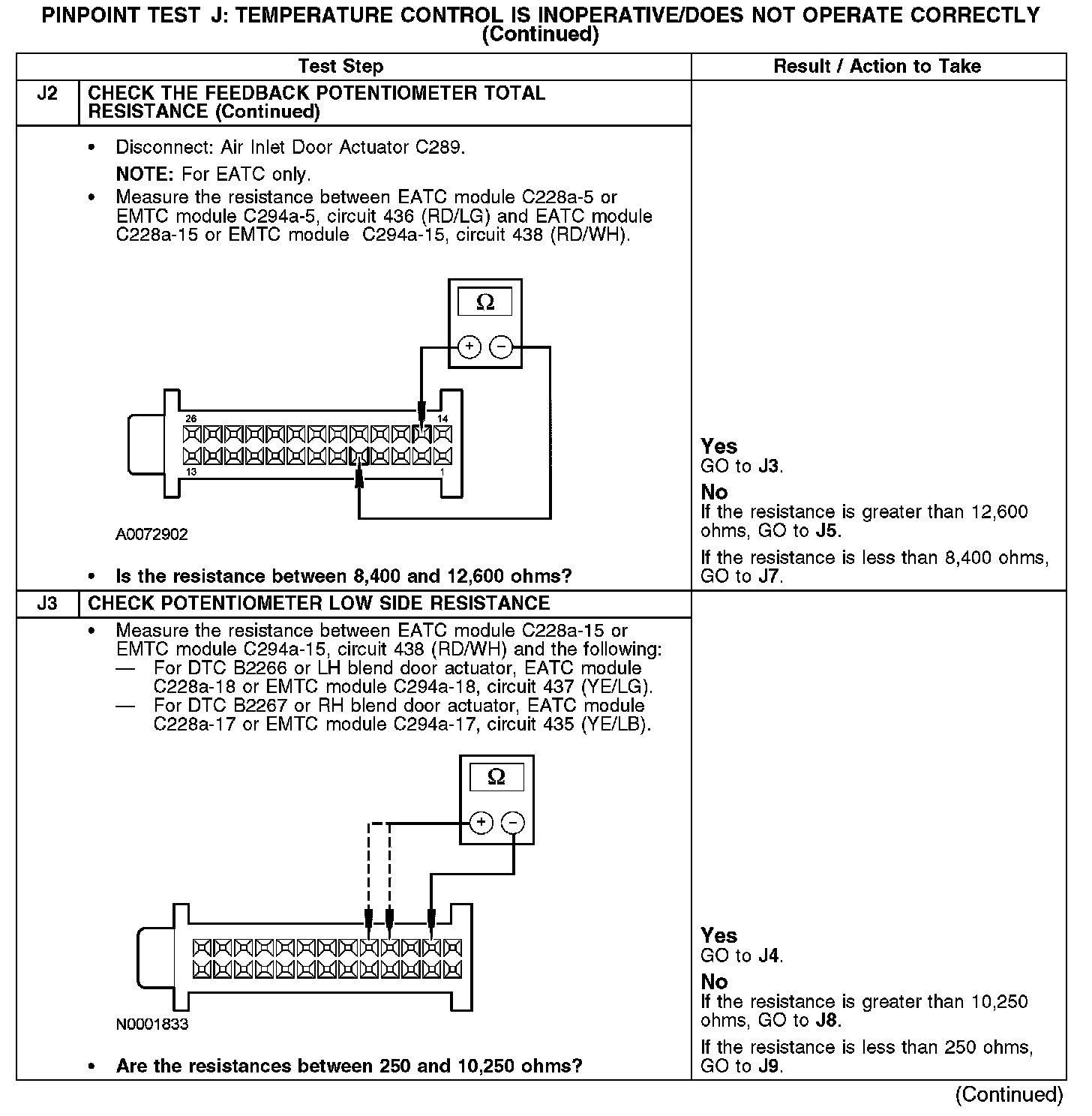 PINPOINT TEST J: TEMPERATURE CONTROL IS INOPERATIVE/DOES NOT OPERATE CORRECTLYJ1-J2:
