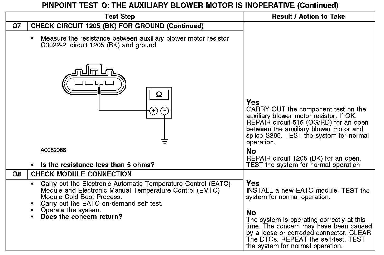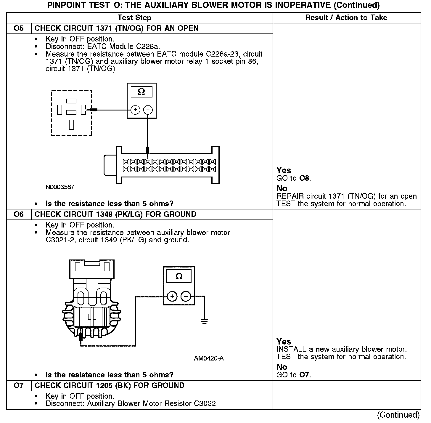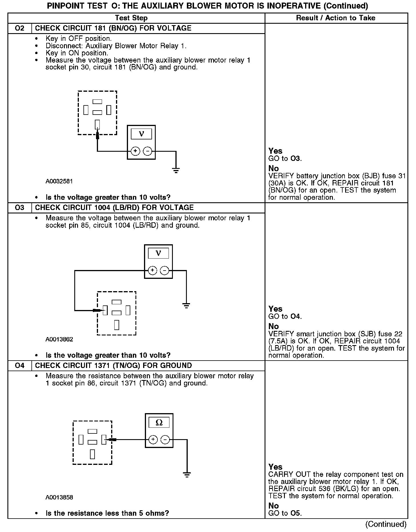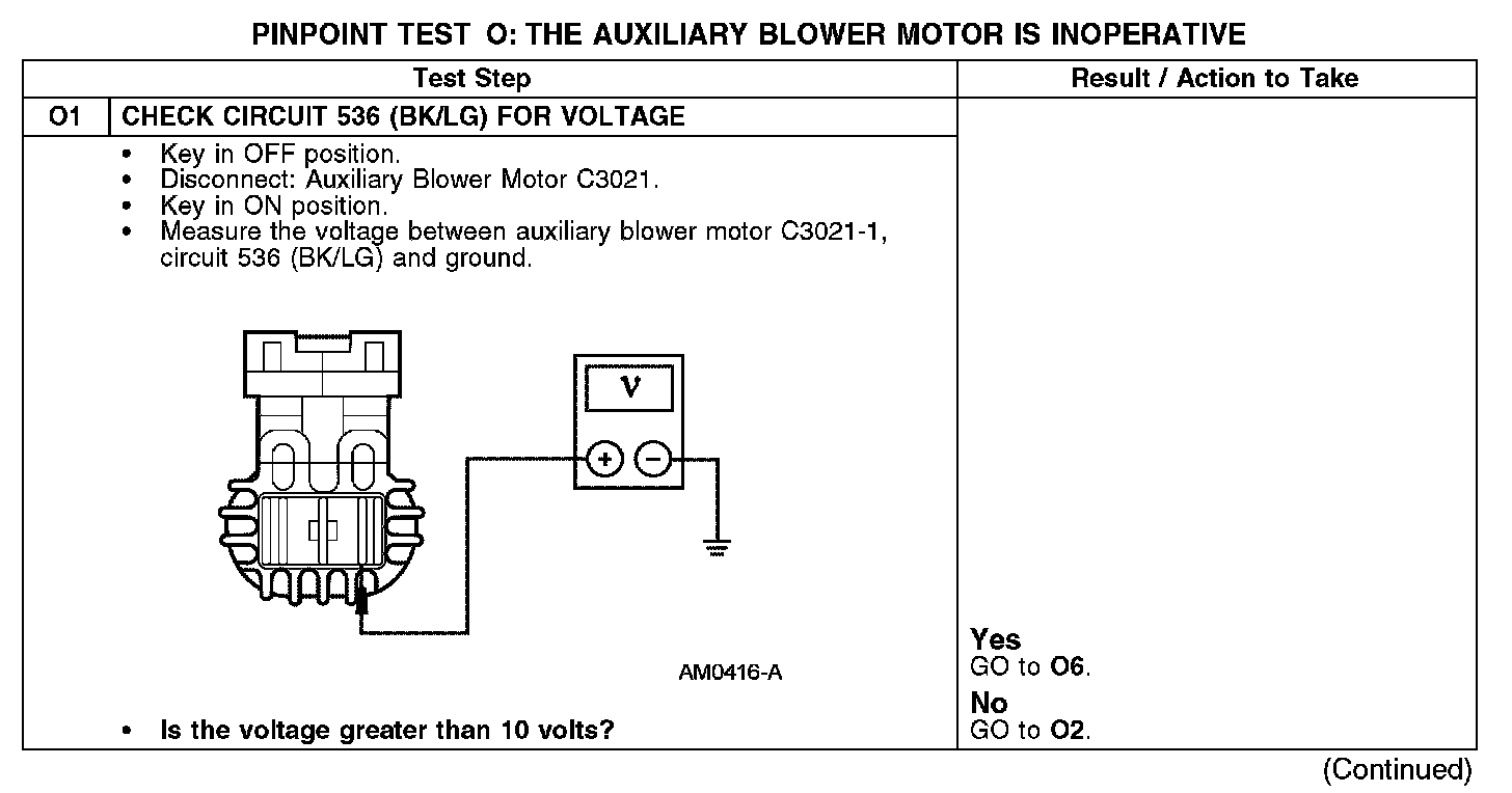 PINPOINT TEST O: THE AUXILIARY BLOWER MOTOR IS INOPERATIVEO1: