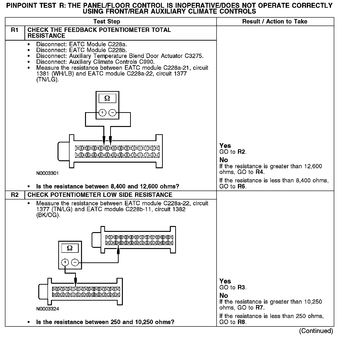 PINPOINT TEST R: THE PANEL/FLOOR CONTROL IS INOPERATIVE/DOES NOT OPERATE CORRECTLY USING THE FRONT/REAR AUXILIARY CLIMATE CONTROLSR1-R2: