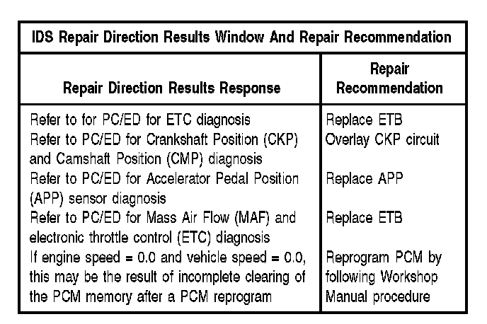 11. Does IDS screen line MEASURED THROTTLE ANGLE compared to DESIRED THROTTLE ANGLE indicate a fault (difference is greater then 5 degrees)?