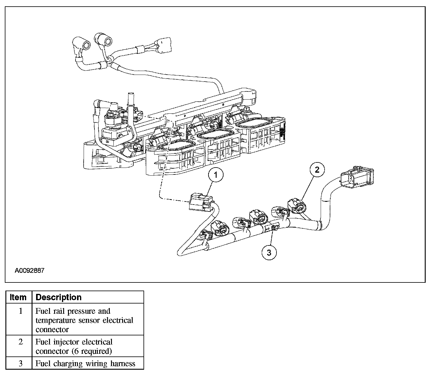 3. Disconnect the 6 fuel injector electrical connectors.