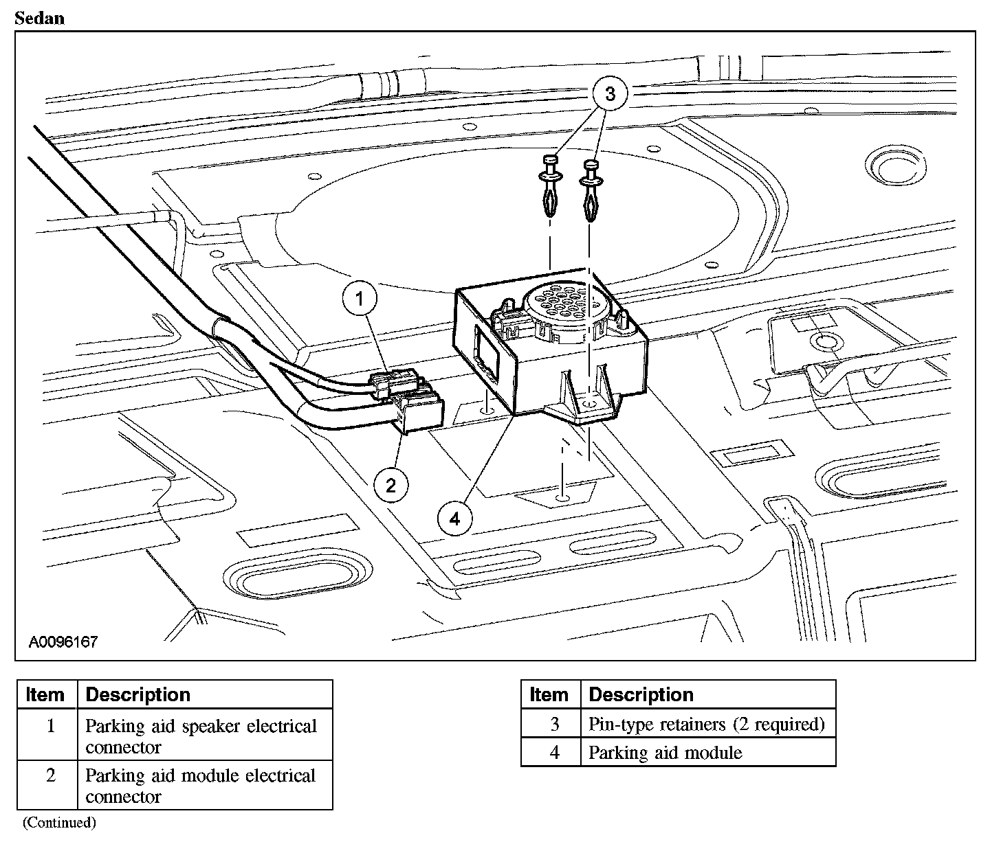 5. Remove the 2 pin-type retainers and the parking aid module.