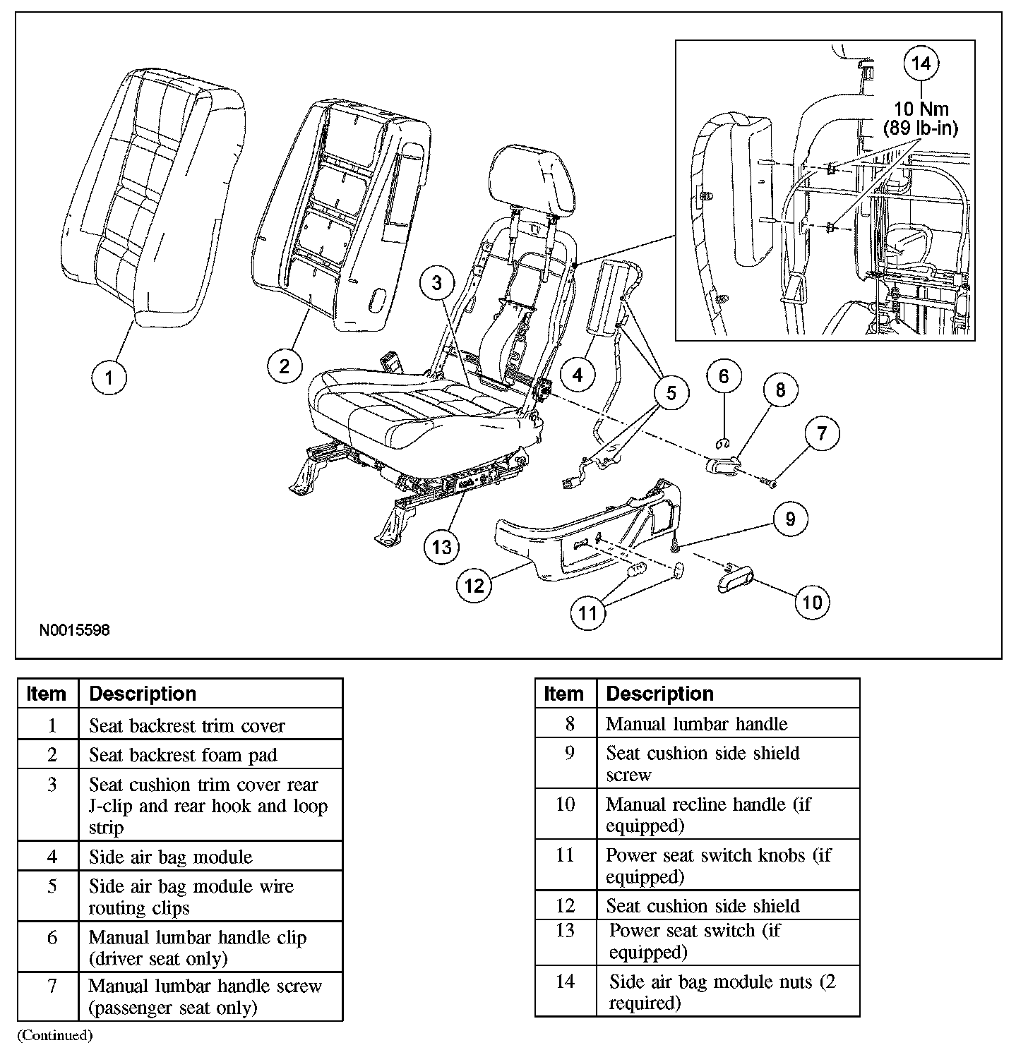 14. WARNING: Front seat back trim covers installed on seats equipped with side air bags cannot be repaired; they are to be replaced (cleaning is permissible).